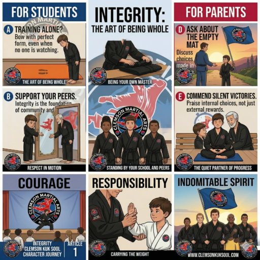 Think about the Dojang floor. On the mat, there are clear rules and customs. Your instructors are watching, your classmates are training beside you, and you are held accountable for your focus, your posture, and your respect. Integrity, however, is the art of being that exact same person when no one is watching.